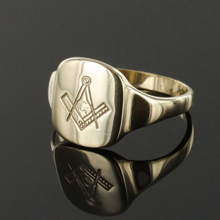 Hallmarked Solid 9ct Gold Masonic Signet Ring depicting the “square and compass with G” symbol at its centre.