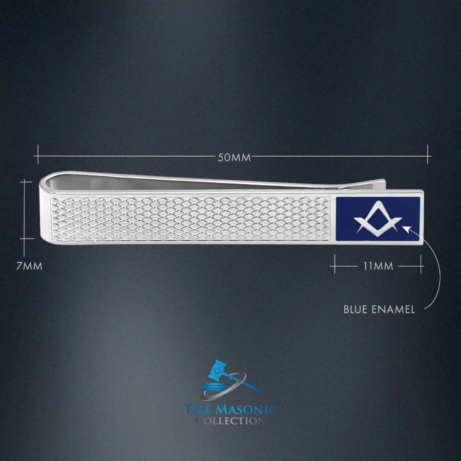 Elegant and functional, this stunning Tieslide would be the perfect finish to your attire. Silver plated Diamond cut pattern along with the square & compass emblem set on a Blue enamel.