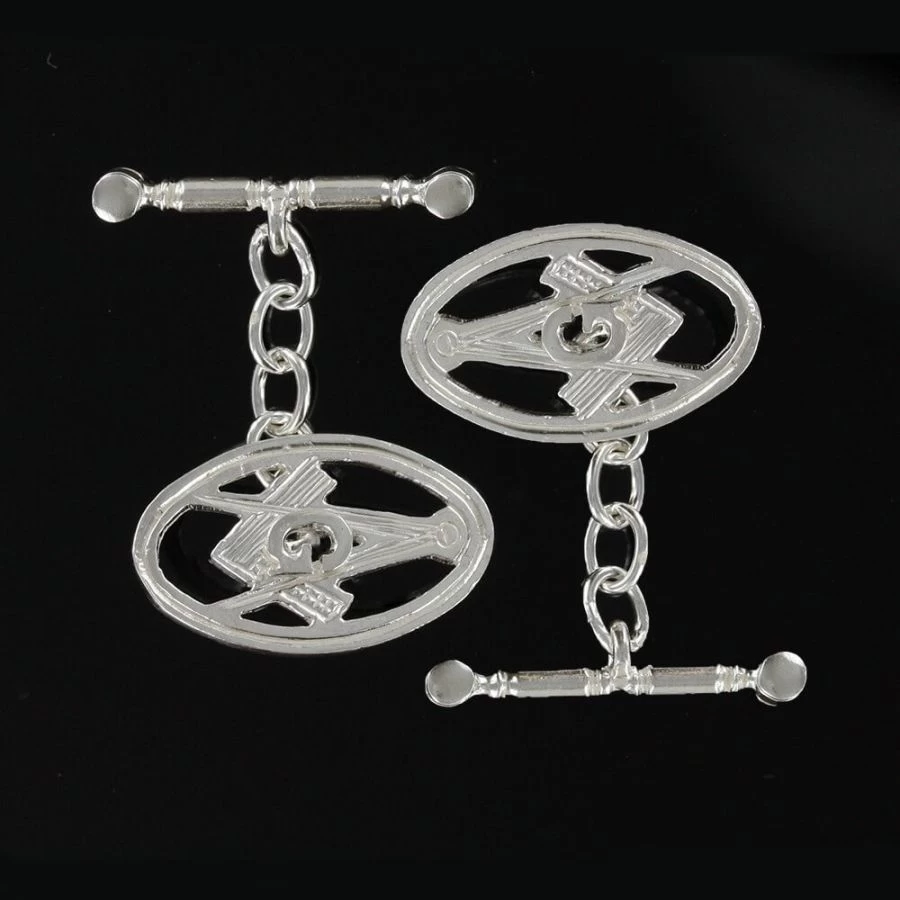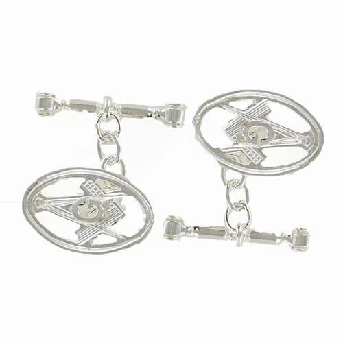 A fine quality pair of Silver Masonic Cufflinks featuring the Square and Compass with G motif and a unique Gavel toggle design. Cufflinks come complete in an appropriate box.
