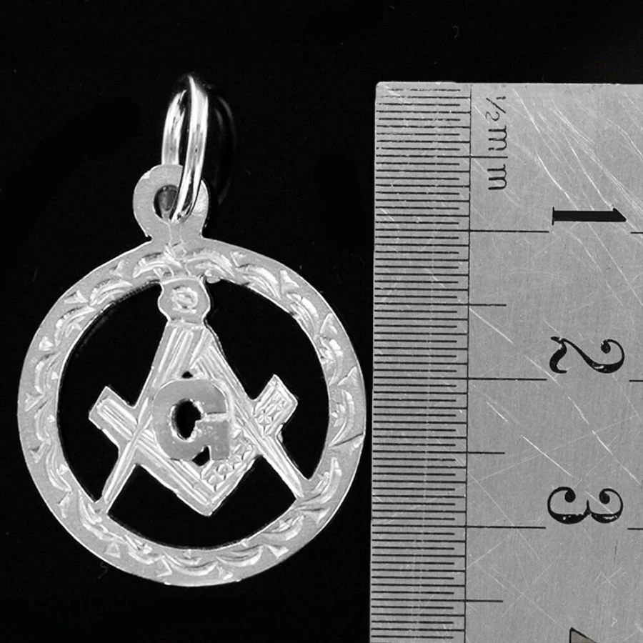 Manufactured in Sterling Silver a Large Circle Pendant with the Square and Compass with G symbol at its center.