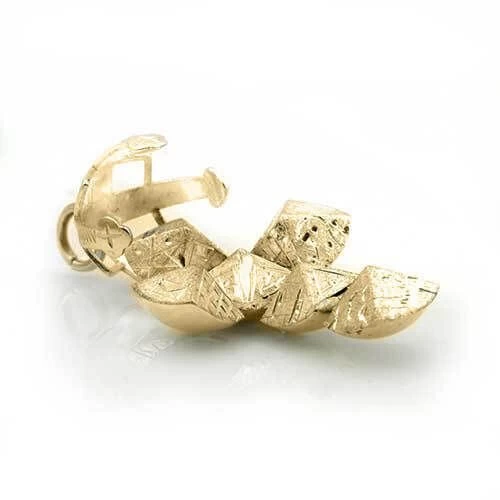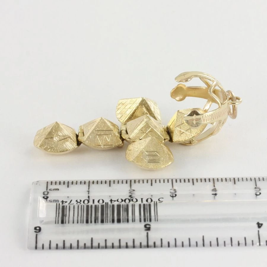 A 9ct Yellow Gold intricately fabricated Masonic Orb – also known as a Globe & Cross Fob or a Masonic Ball. It can be worn as a pocket watch fob, as a charm on a bracelet, or as a pendant either closed (ball) or open in the shape of a cross. When open the orb reveals 6 Pyramids all decorated with hand engraved Masonic symbols on each face (4 symbols per pyramid).