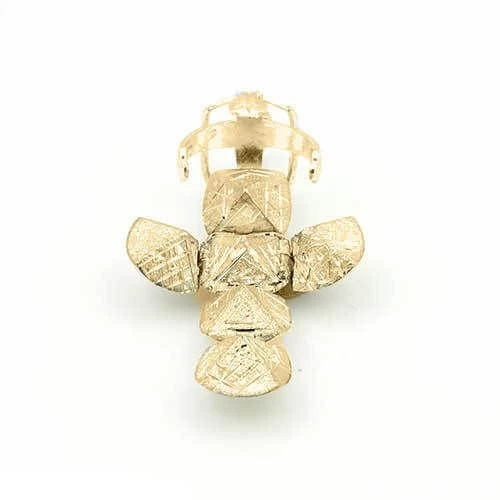 Each pyramid is held to its neighbour by secure hinges, when folded back into a ball its secured by 3 arms which constitutes its holder. The holder itself features a jump ring making it easy to wear as a fob on a watch chain, a pendant or charm on a bracelet.