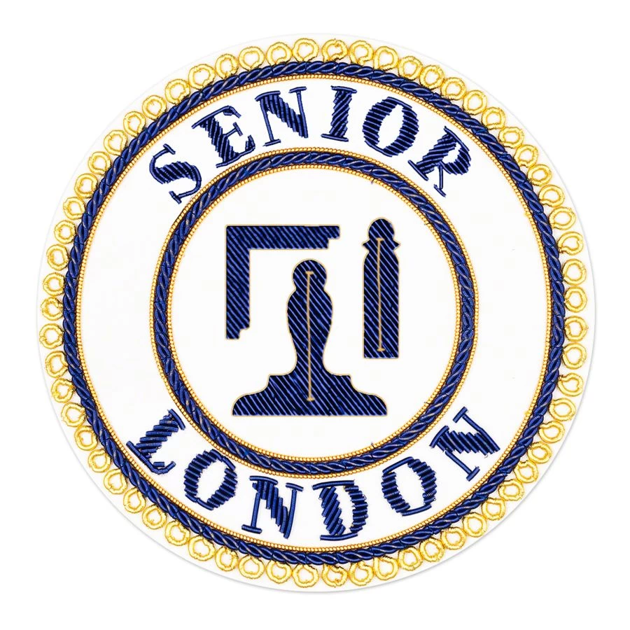 The Senior London Grand Rank Undress Apron Badge is hand-embroidered, sewn using quality blue and gold bullion wire on lambskin. Designed to perfection, it represents craftsmanship of superior standards and commitment of our designers to detailing’s. The badge can be attached to your apron due to its self-adhesive 3M peel off sticky back, although we recommend using some extra glue around the edges to stop it from peeling off the apron. You can place bulk order the badge to supply to your Lodge.