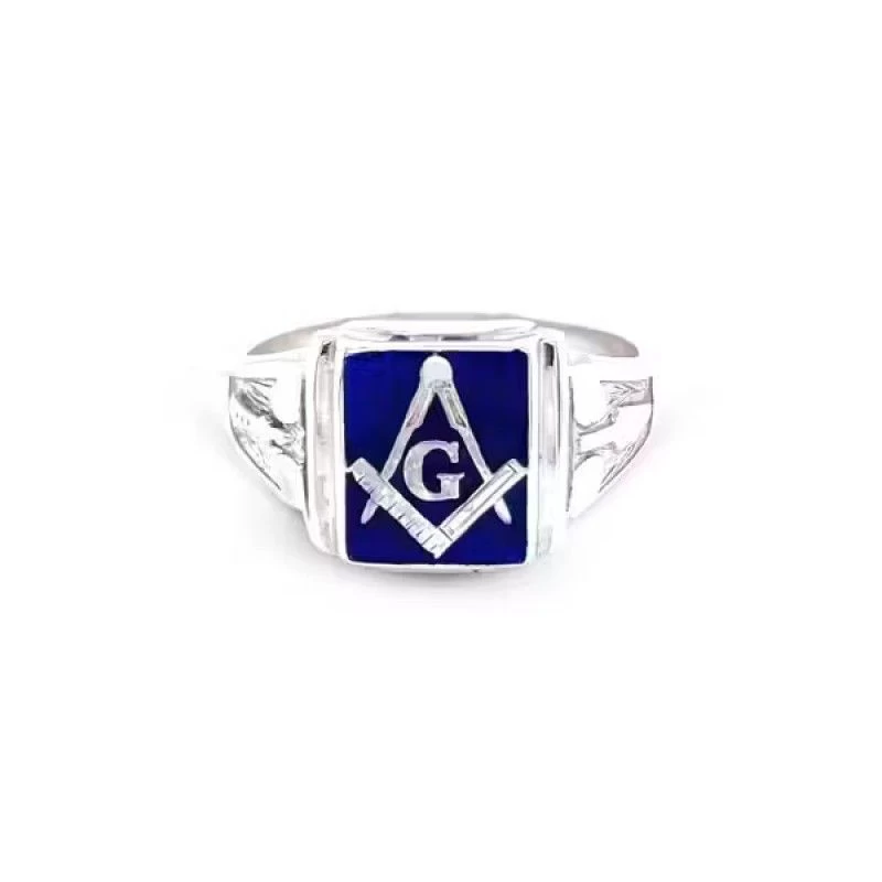 Gold Square And Compass Oval Head Masonic Ring (Blue) – Fixed Head