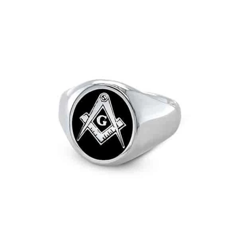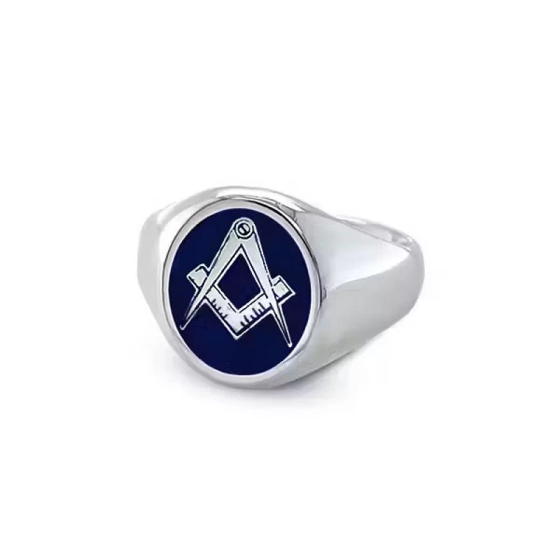 Gold Square And Compass Oval Head Masonic Ring (Blue) – Fixed Head